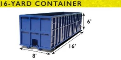 A 16-yard container holds 16 cubic yards of debris (or about 16 stoves)