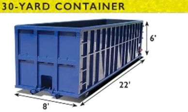 A 30-yard container holds 30 cubic yards of debris (or about 30 stoves)